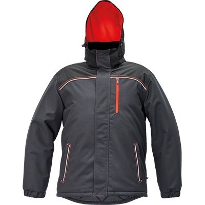 Машка зимска јакна со полнење и со качулка што се вади, продолжен заден дел, појачан дел на рамената, еден џеб на градите со патент во контрастна боја со висока видливост, два џеба за рацете, два внатрешни џеба коишто можат да се затворат, погодна за поставување амблем со везење или печатење, рефлектирачки детали, декоративни штепови со висока видливост. Материјал 100% полиестер 300D/ТПУ, 200 g/m2; постава 100% полиестер.