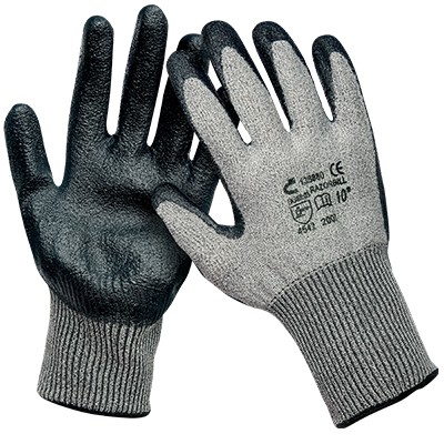 Плетени ракавици без шевови изработени од комбинација од модифицирани стаклени влакна, спандекс и најлон, со слој од HTC нитрил на дланките и прстите. Имаат отпорност на сечење ниво 5. Погодни за употреба во машинската индустрија, стакларската индустрија, за работа со остри предмети каде што постои опасност од пресекување.